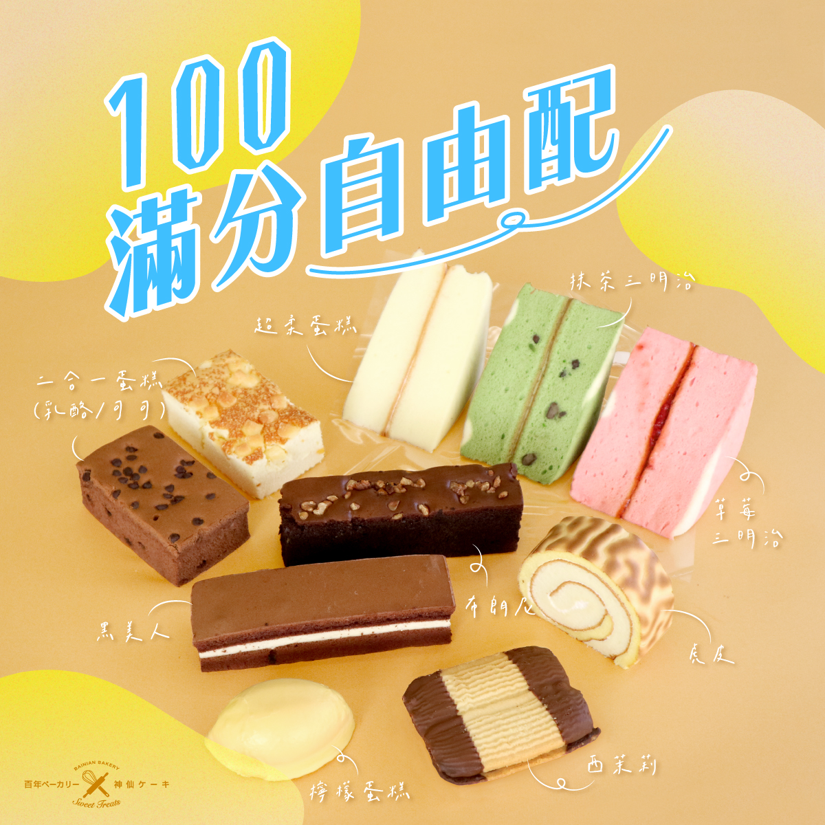 二合一蛋糕(乳酪/可可)、超柔蛋糕、抹茶三明治、草莓三明治、布朗尼、黑美人、虎皮、檸檬蛋糕、西茉莉、原味蒸果子、草莓蒸果子