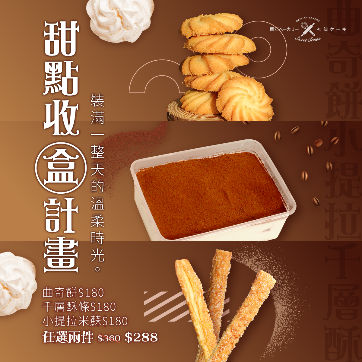 曲奇餅、小提拉米蘇、千層酥條